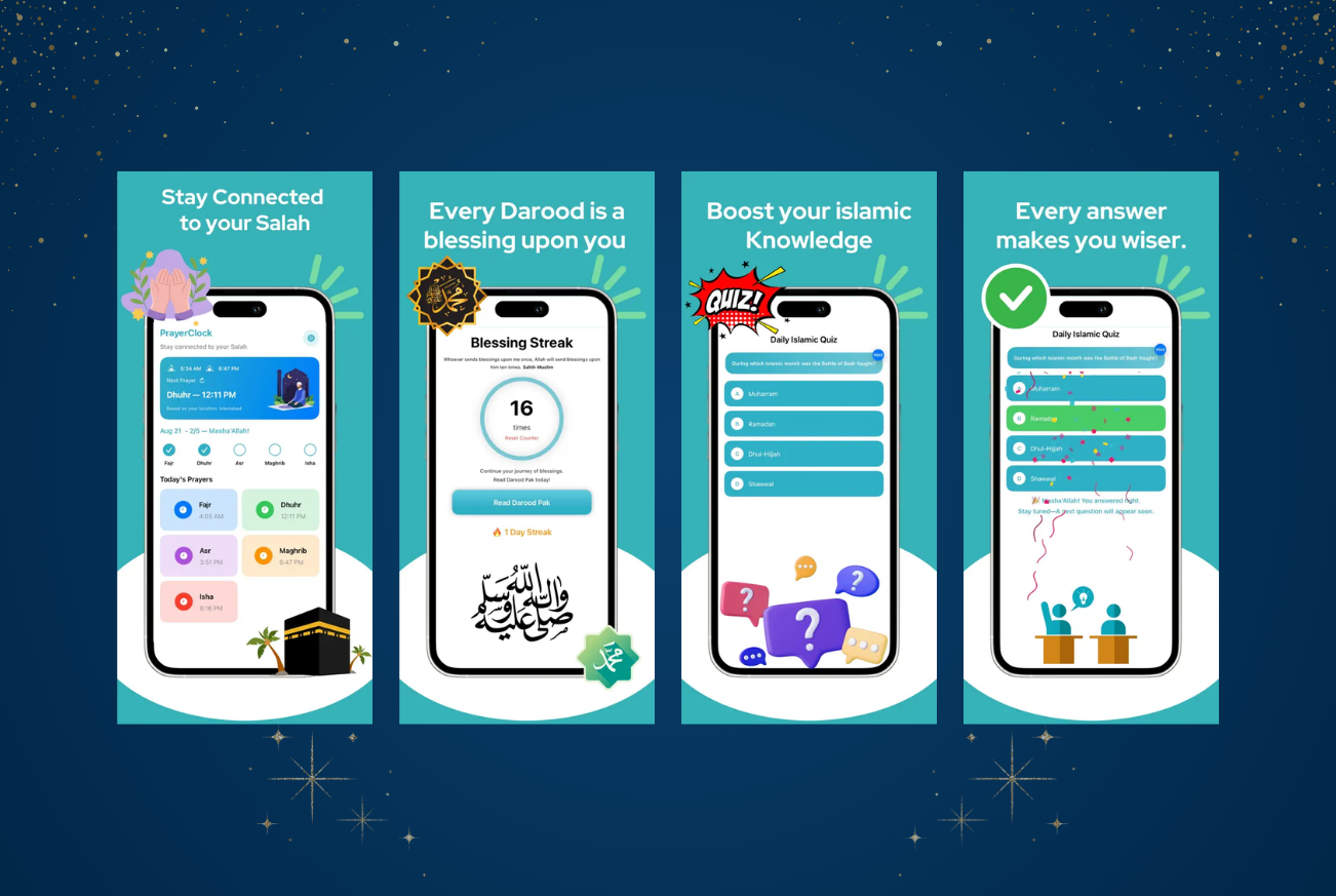 Created an iOS app that provides accurate Islamic prayer times, Daily Islamic quiz, Darood Pak streak, and customizable reminders, designed with a clean interface to support a seamless spiritual routine.