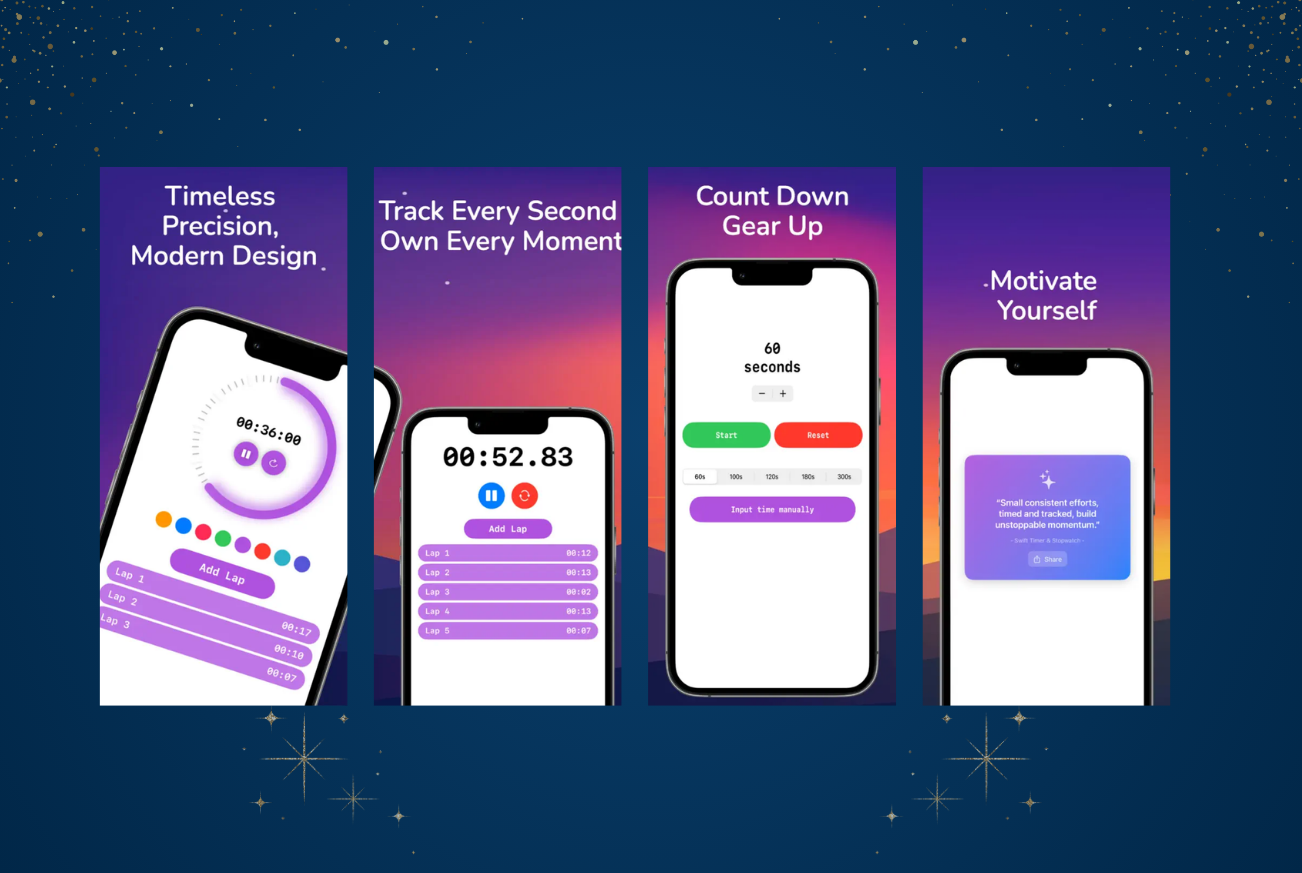 Published an indie iOS app featuring a precise timer and stopwatch with analog, digital, and hybrid modes, along with streak tracking and customizable countdowns for productivity and daily use.